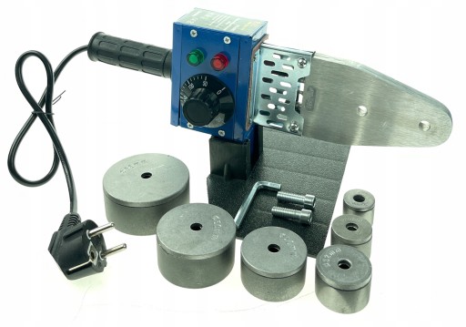 Do zestawu dołączonych jest 7 trzpieni i mufek grzewczych umożliwiających pracę z rurami i kształtkami o średnicach: 16, 20, 25, 32, 40, 50 oraz 63mm. Mufki pokryte są powłoką teflonową, co pozwala na uzyskanie jeszcze precyzyjniejszych połączeń