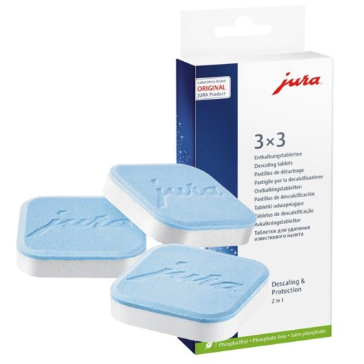 Dwufazowe tabletki odkamieniające JURA skutecznie i szybko usuwają osad z kamienia, a dzięki nowej formule dodatkowo zabezpieczą Twój ekspres na dłużej. We wszystkich urządzeniach gospodarstwa domowego gdzie używamy wody z kranu, osad z kamienia jest dużym zagrożeniem dla ich trwałości.
