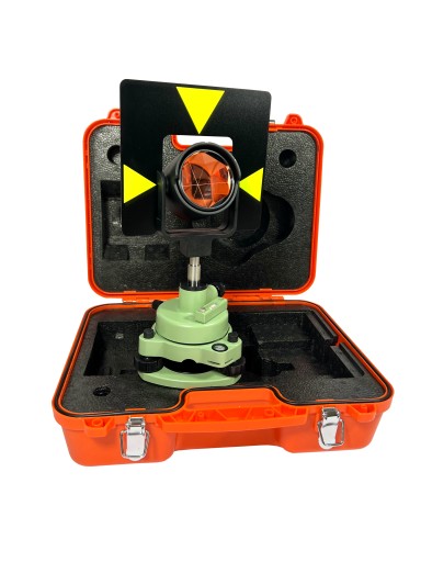 Lustro dalmiercze typ LEICA GPH1 duże w zestawie z tarczą celowniczą oraz nośnikiem z pionem optycznym. Duża średnica pryzmatu wynosząca 64mm. Lustro może być montowane na tyczce przy pomocy trzpienia LEICA/WILD.