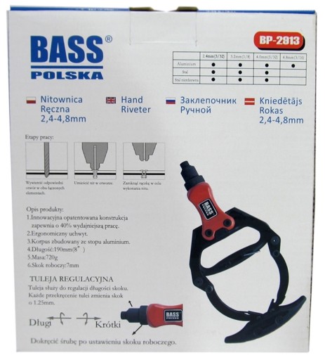 РУЧНОЙ ПЕРЕДНИЙ ЗАКЛЕПОЧНИК BASS ДЛЯ ЗАКЛЕПОК