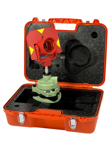 Lustro dalmiercze typ LEICA GPR111 duże w zestawie z tarczą celowniczą oraz nośnikiem z pionem optycznym. Duża średnica pryzmatu wynosząca 64mm. Lustro może być montowane na tyczce przy pomocy trzpienia LEICA/WILD.