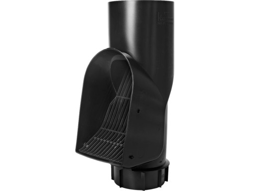 Samoczyszczący separator do usuwania liści z rur spustowych. Prosty montaż. Z odpornego na warunki pogodowe polietylenu HD. Średnica góra/dół 114/102 mm.
