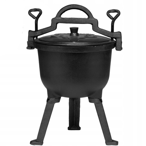 Oryginalny kociołek, wykonany z najwyższej jakości stopu żeliwa odpornego na najwyższe temperatury. Firma ta jako pierwsza zastosowała specjalny odpowietrznik w pokrywie, który reguluje ciśnienie wewnątrz kociołka, przez co jest on w 100% bezpieczny. Kociołek może stać bezpośrednio w ognisku, a dzięki poręcznemu uchwytowi może być zawieszony również nad ogniskiem. Produkt posiada również odkręcane nóżki, przez co kociołek można umieścić w kominku lub bezpośrednio w palenisku. Dzięki wytłoczeniu na pokrywie masz pewność, że kupujesz oryginalny i bezpieczny produkt.