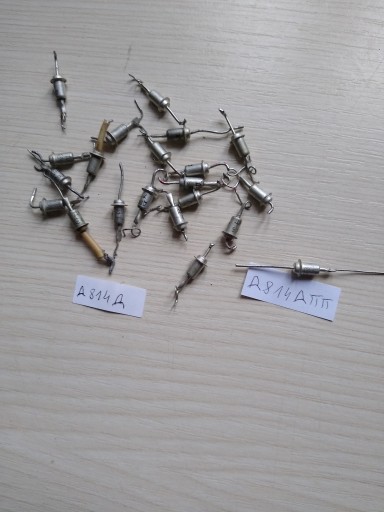 Na sprzedaż diody Zenera D814D produdcji rosyjskiej. Uz=11,5 do 14V przy prądzie 5mA, Ptot.=0,34W. Diody są wyjęte z urządzeń mają wyprowadzenia skrócone,niektóre na 5 mm.Jedna dioda jest nowa D814DPP.Cena dotyczy jednego kompletu,czyli 3 sztuki.