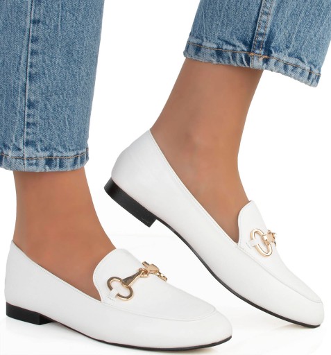 7304 BIAŁE MOKASYNY PÓŁBUTY ŁAŃCUCH EKOSKÓRA 38