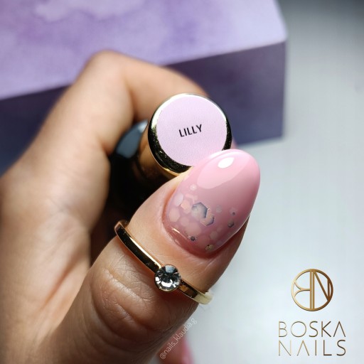 Baza kauczukowa Lilly w kolorze zbliżonym do naturalnej płytki paznokcia.
