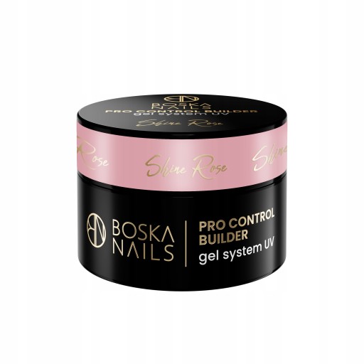 Shine Rose Pro Control Builder Gel System UV 15 ml Boska Nails w kolorze ciepłego różu z delikatnie mieniącymi się drobinkami.