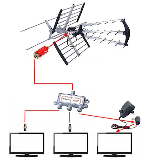 - Wzmacniacz Antenowy liniowy 20db HD 12V