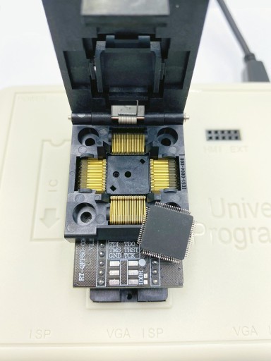 Przedmiotem oferty jest wyłącznie adapter QFP64. Programator i układ widoczne na zdjęciach są wyłącznie w celach poglądowych