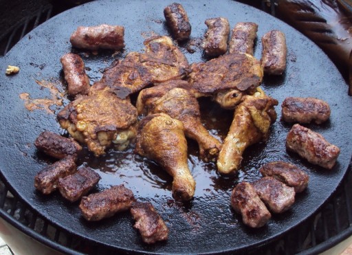 Patelnia posiada odkręcane nóżki, dzięki temu można ją postawić bezpośrednio na palenisku lub grillu.