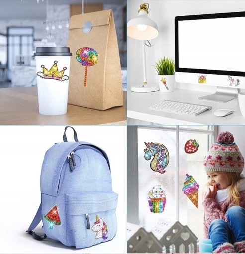 MIEJSCA do UMIESZCZANIA KRYSZTAŁKÓW są POKRYTE KLEJEM ABY ŁATWO APLIKOWAĆ KRYSZTAŁEK NA JEDNO MIEJSCE. Pozostała część naklejki nie klei się co umożliwia umieszczenie jej na dowolnej powierzchni po stworzeniu MAŁEGO DZIEŁA SZTUKI.