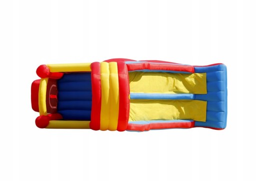 Dmuchaniec COMBO SLIDE został wyposażony w jedną zjeżdżalnię z dwoma torami, tunel oraz ściankę do wspinania.