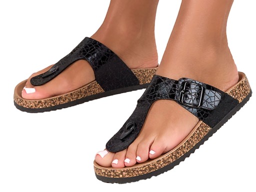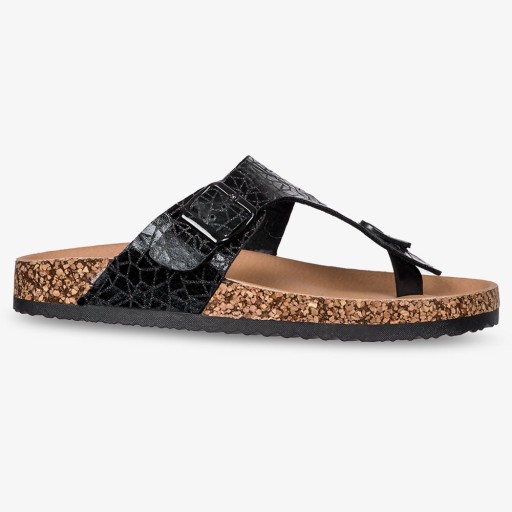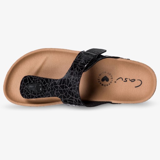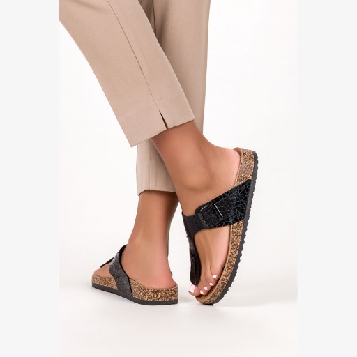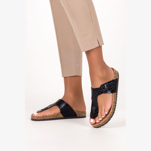 Czarne klapki japonki błyszczące z profilowaną korkową podeszwą Casu H23X1-B
