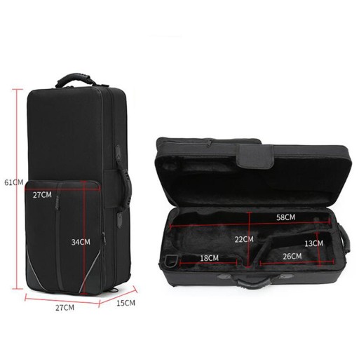 Duża przestrzeń: aksamitna podszewka, główna kieszeń może pomieścić saksofon altowy, przednia kieszeń może być wyposażona w akcesoria i nuty, rozmieszczenie jest rozsądne, a instrument może być lepiej chroniony.