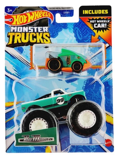 Ten zestaw Hot Wheels Monster Trucks pozwala w jednej chwili rozpocząć nową kolekcję. W środku znajdziesz 1 metalowy Monster Trucków i 1 metalowych samochodzik w skali 1:64 do epickiej zabawy w robienie kraks. Zbierz też inne pojazdy i zabawki Monster Trucks, aby organizować jeszcze więcej popisów kaskaderskich, wyścigów i starć! Doskonały prezent dla 3 latka , zwłaszcza fana Monster Trucków! Kolory i elementy dekoracyjne mogą się różnić.