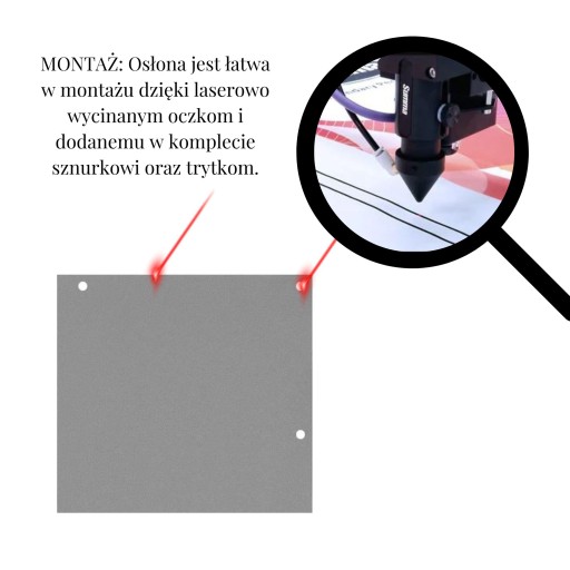 - MONTAŻ: Osłona jest łatwa w montażu dzięki laserowo wycinanym oczkom i dodanemu w komplecie sznurkowi oraz trytkom.