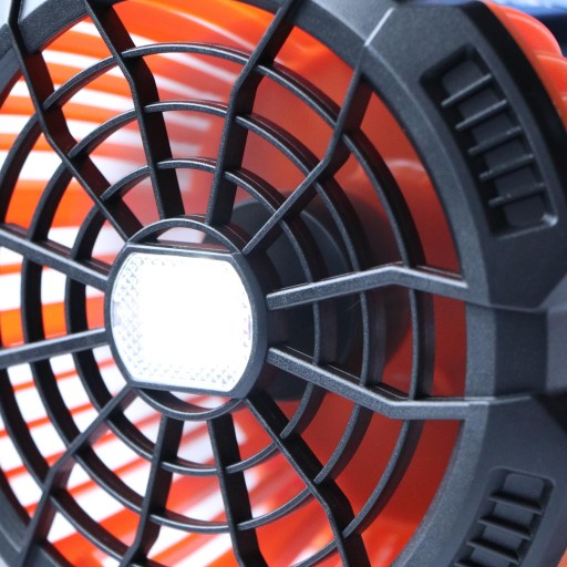 Wentylator kempingowy 2 w 1: Ta kombinacja lampy LED i wentylatora zapewnia wygodę w gorącym namiocie przy użyciu przenośnego wentylatora.