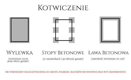Po zamontowaniu garaż należy przykotwiczyć do podłoża.