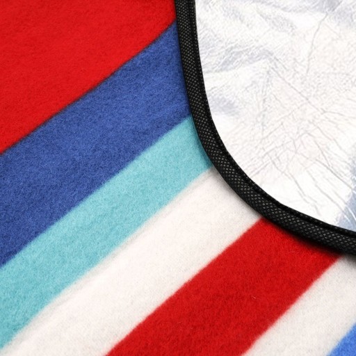 Jako podbicie koca zastosowano materiał EPE gwarantujący rewelacyjne parametry termoizolacyjne. Dodatkowo spód pokryto cienką warstwą aluminium zapobiegającą przemoczeniu koca.