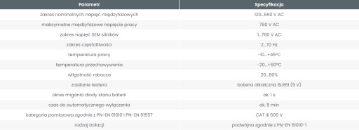 - wskazywanie kolejności faz w sieciach o napięciach 120...690 V AC