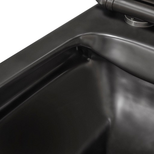 Deska: czarna, duroplast wolnoopadająca. Duroplast to materiał, który kolorem i fakturą przypomina ceramikę, jest łatwy w utrzymaniu czystości i odporny na zarysowania. Deska posiada system szybkiego wypinania, dzięki któremu w prosty i ekspresowy sposób wymienimy deskę lub wyjmiemy w celu umycia.
