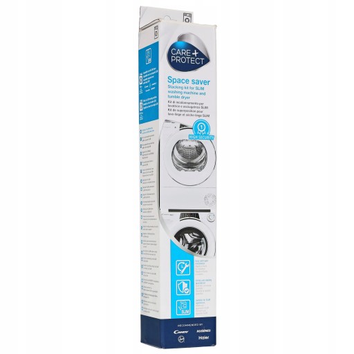 Zaprojektowany z myślą o wąskich urządzeniach; ten szybki i łatwy w instalacji zestaw gwarantuje bezpieczeństwo i stabilność nawet wtedy, gdy pralka pracuje na najwyższych obrotach lub jest pełna. Zestaw ten jest kompatybilny z suszarkami Candy lub Hoover SLIM (głębokość 46 cm), ale może być on również montowany na wszystkich pralkach SLIM o głębokości od 40 do 47 cm.
