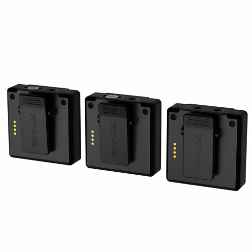 Czytelne wyświetlacze LCD sprawiają, że obsługa zestawu jest prosta i intuicyjna. Mikroporty posiadają wewnętrzne akumulatory o pojemności 330 mAh. Czas pracy urządzeń wynosi około 6 godzin. Mikroporty są przechowywane i jednocześnie ładowane w dołączonej do zestawu stacji dokującej. Pojemność stacji to 3000 mAh. W zestawie znajdziemy też rozgałęziony przewód zakończony z jednej strony trzema portami USB-C i standardowym portem USB-A z drugiej. Służy on do ładowania urządzeń. Kabel USB-C w kolorze pomarańczowym pozwala także na połączenie odbiornika z komputerem czy laptopem.