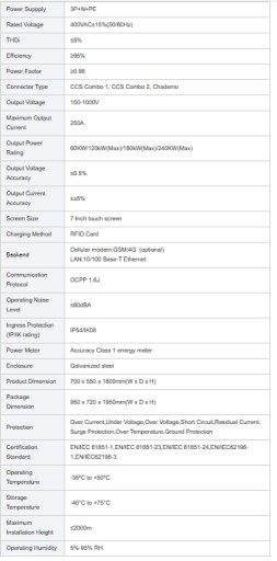 Stacja ładowania DC firmy SINO 120KW, 2xCCS2