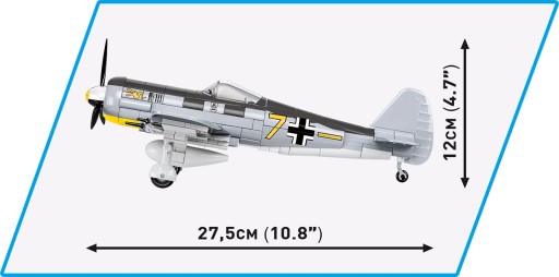 Model samolotu Focke-Wulf Fw190 A-3 zbudowany z klocków konstrukcyjnych COBI to wiernie odwzorowany w skali 1:32 dolnopłat z okresu II wojny światowej. Model oferuje wiele ruchomych elementów takich jak obracające się śmigło, ruchome lotki skrzydeł czy koła z gumowymi oponami, które można złożyć do pozycji poziomej. Odwzorowane detale i historyczna kolorystyka samolotu. Kokpit można otworzyć, by posadzić w fotelu figurkę pilota inspirowaną postacią niemieckiego Asa. Dzięki specjalnej podstawce, ekspozycyjnej z tabliczką zawierającą nazwę samolotu oraz miejsce na przyczepienie figurki cały zestaw prezentuje się znakomicie! W modelu zastosowano trwałe nadruki i historyczne oznaczenia.Zestaw uzupełnia kolekcję samolotów z okresu drugiej wojny światowej przeznaczoną dla pasjonatów historii, techniki wojskowej oraz entuzjastów najwyższej jakości modelarstwa klockowego!
