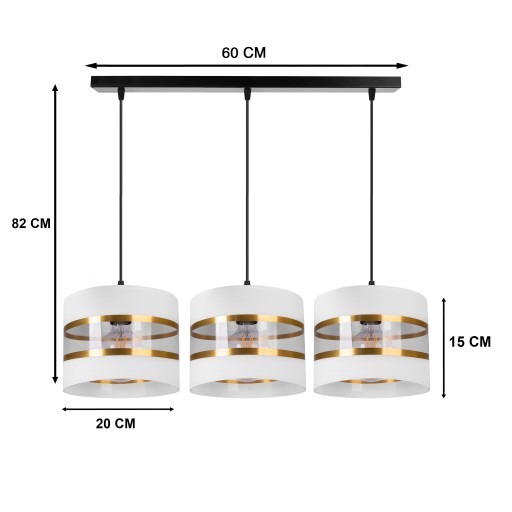 - Materiał wykonania abażurów: tkanina + folia PCV