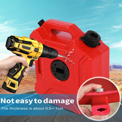 Korek po odkręceniu zamienia się w lejek z długą szyjką , zapobiega rozlewaniu paliwa.