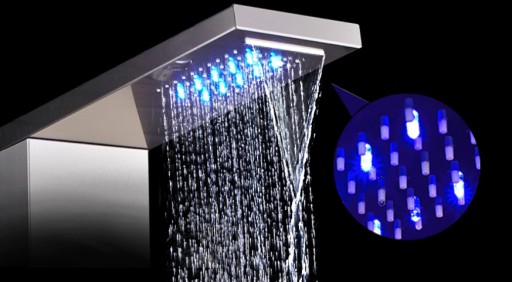 Ekskluzywny, stylowy, nowoczesny panel prysznicowy z hydromasażem, wodospadem, deszczownicą.