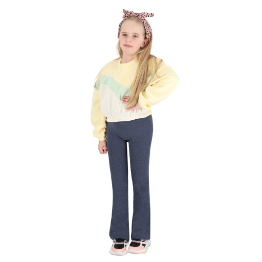 Spodnie dzwony to standardowy krój z rozszerzanymi nogawkami na dole, góra została wykończona miękkim ściągaczem z przeszytą gumką. Najmodniejsze spodnie tego sezonu - must have w każdej szafie małej dziewczynki lub nastolatki.