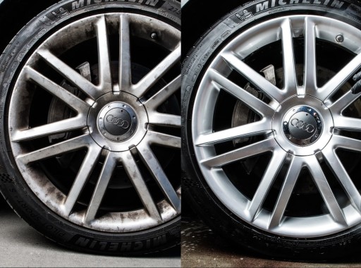 Poniżej zdjęcia "przebytej drogi" od brudnej do czystej felgi
