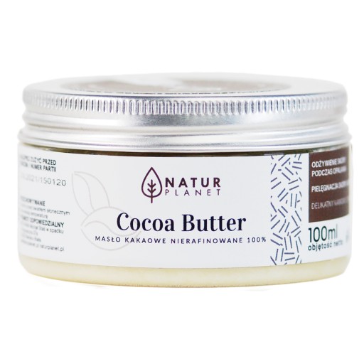 Masło kakaowe 100ml bez dodatków i aromatów w pudełkach aptecznych.