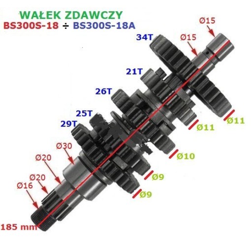 * zębatka podwójna biegu wstecznego:[107340-010(24z/15z)];