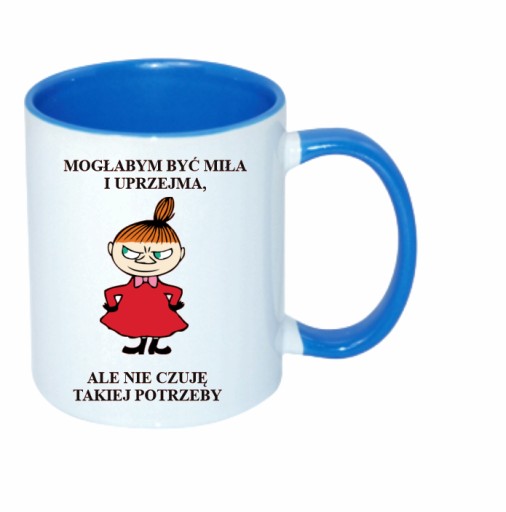 ✅ Kubek biały z niebieskim uchem oraz środkiem