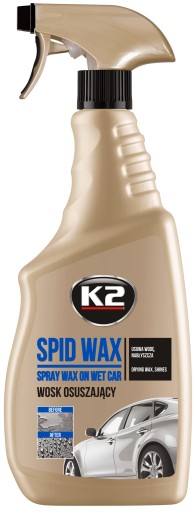 K2 Spid Wax jest to syntetyczny wosk osuszający, który służy do osuszania oraz zabezpieczenia lakieru. Nałożony na umytą karoserię Powoduje, że na lakierze powstaje cienka warstwa hydrofobowa, która odpycha wodę i powoduje jej spływanie – efekt samoosuszania lakieru. Przywraca naturalną barwę i połysk lakieru. K2 Spid Wax jest woskiem w sprayu, przez co jego aplikacja nie wymaga wysiłku. Jest alternatywą dla tradycyjnego osuszania za pomocą ręcznika z mikrofibry czy ściągaczki do wody. Zabezpiecza lakier przed działaniem czynników atmosferycznych. Po użyciu K2 Spid Wax woskowanie nie jest już potrzebne.