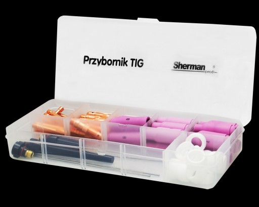 Zestaw podstawowych elementów niezbędnych do uzbrojenie każdego uchwytu spawalniczego TIG o standardzie SR17/18/26