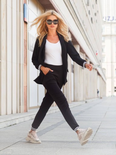 Rękawy marynarki oraz dół spodni wykończony ściągaczem
