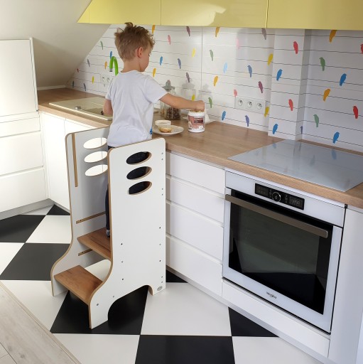 Kitchen helper to Twój osobisty pomocnik w kuchni przy pracy z dzieckiem. Dzięki niemu odzyskasz dwie ręce, a oczu nie będziesz musiała mieć już dookoła głowy. Ten niepozorny pomocnik zapewni bezpieczeństwo Twojemu maluchowi, a dodatkowo da mu możliwość rozwoju poprzez eksperymentowanie, poznawanie nowych rzeczy i pomaganie Ci w codziennych czynnościach. Został bowiem stworzony z myślą o najmłodszych, a Ci aż rwą się do pomocy.
