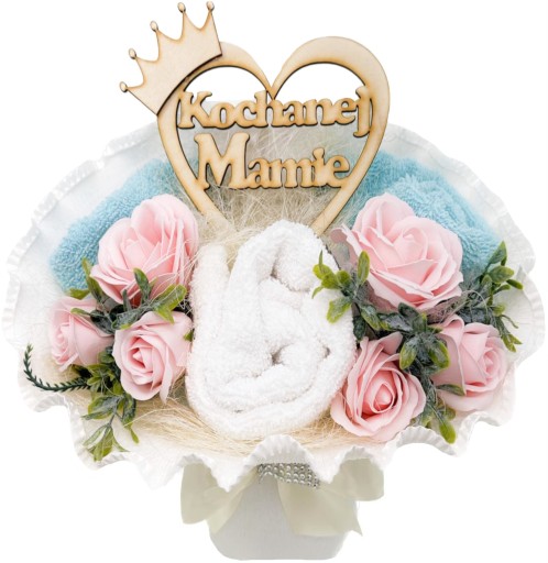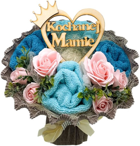 PREZENT dla Mamy bukiet kwiaty mydlane i ręczniki