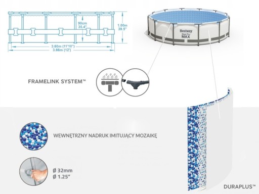 - Mocny stelaż: Zapewnia stabilność całego basenu.