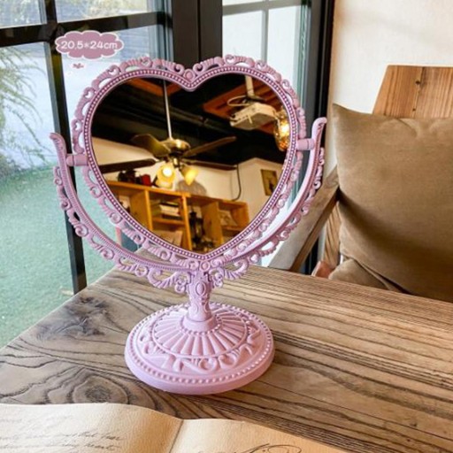 Lusterko do makijażu na biurko Retro Europejskie na blat Sypialnia Biurko Serce Różowe