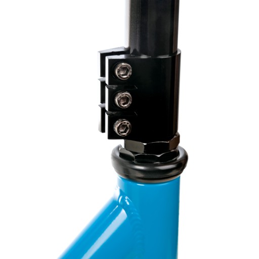 Łączenie kierownicy z widelcem hulajnogi jest również ważna kwestią. Dlatego do naszej Hulajnogi RAVEN Evolution Series została zamontowana wytrzymała aluminiowa obejma zaciśnięta na trzy śruby mocujące.