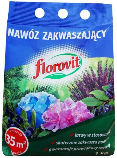 Florovit nawóz zakwaszający skutecznie zakwasza podłoże (obniża pH) jednocześnie zapewniając odpowiednie warunki do rozwoju roślin kwaśnolubnych. Stosowanie nawozu sprzyja przyswajaniu przez rośliny składników pokarmowych dostępnych w glebie.