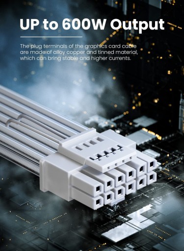 - 【Przewód miedziany 16AWG i moc wyjściowa do 600 W】 Kabel zasilający karty graficznej Fasgear PCI-Express 5.0 obsługuje moc wyjściową do 600 W, ponieważ jest wykonany z cynowanych drutów miedzianych 16 AWG. Zaciski wtykowe kabla karty graficznej są wykonane ze stopu miedzi i cynowanego materiału. W porównaniu ze standardowym przewodem zasilającym 18AWG, ten zaktualizowany cynowany drut miedziany 16AWG może zapewnić stabilną transmisję napięcia i wyższą moc wyjściową. Tymczasem ta cynowana miedź może zapobiegać utlenianiu.
