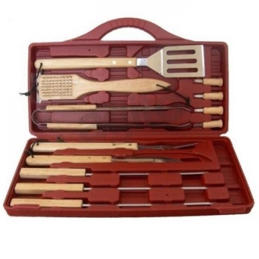 Przybory do grillowania wyprodukowane są ze stali nierdzewnej z drewnianianymi końcówkami, które są przyjemne w dotyku i świetnie leżą w dłoni. Wszystkie przybory (oprócz igieł i szpikulców) posiadają pętelki do zawieszania na przykład na grillu lub wędzarce. Szczypce do grillowania, widelec i obracaczka, za pomocą których łatwo będzie obracać potrawy na grillu, posiadają długość 38 cm. To optymalna długść aby z tymi przyborami dobrze i bezpiecznie pracować, ale jednocześnie aby nie być narażonym na żar z rusztu do grillowania.