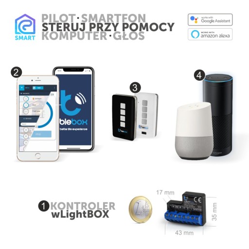 - Bezprzewodowy kontroler wLightBox LedBruk® został specjalnie zaprojektowany przez firmę BleBox dla produktów marki LedBruk® jako najmniejszy bezprzewodowy kontroler oświetlenia. Kontrolery do działania nie potrzebują jednostki centralnej czy hub-u. Wystarczy zwykła sieć WiFi. Po dołączeniu do niej urządzeń mogą być sterowane z dowolnego miejsca na świecie. Bez skomplikowanej konfiguracji. Możesz zacząć od jednego kontrolera sterującego lampą czy roletą a potem rozbudować swój własny Inteligentny Dom dodając kolejne sterowniki według potrzeby.