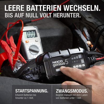 NOCO GENIUS 5 to jedna z najmocniejszych, najwydajniejszych, energooszczędnych i kompaktowych ładowarek na rynku. GENIUS5 to 6-woltowa i 12-woltowa ładowarka do akumulatorów o mocy 5 A do ładowania akumulatorów ołowiowych samochodowych i innych użytkowych, w tym kwasowych, żelowych, AGM, akumulatorów o głębokim cyklu i bezobsługowych, jak również akumulatorów litowo-jonowych.